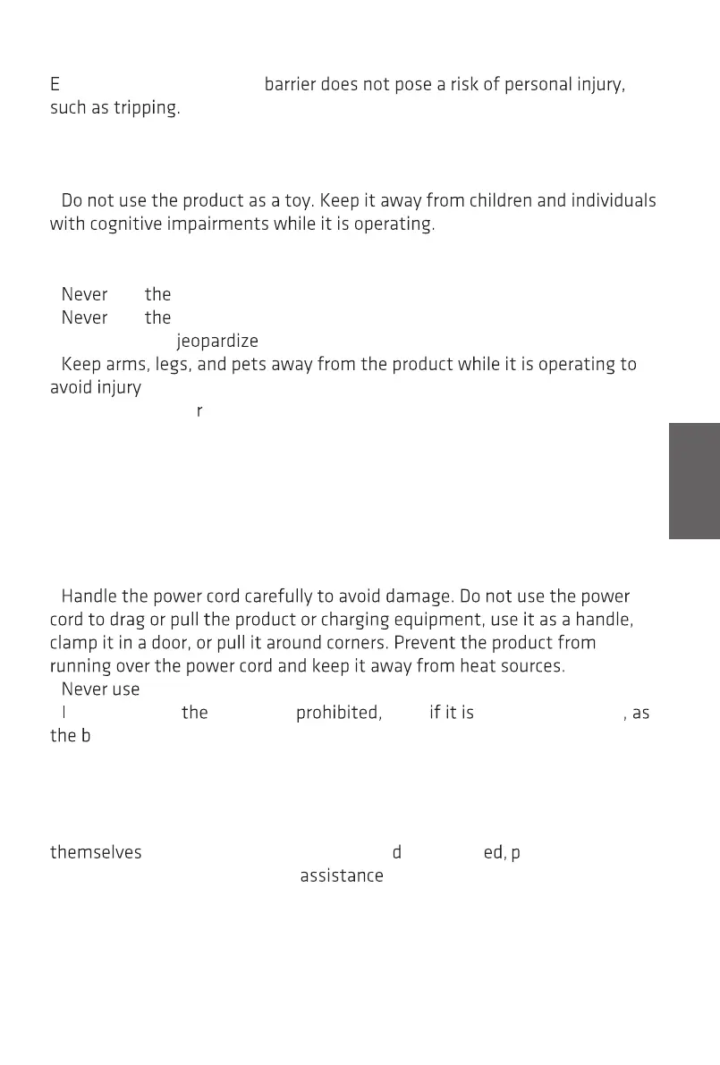 - Do not allow the obot to pick up flammable substances such as oil, printer