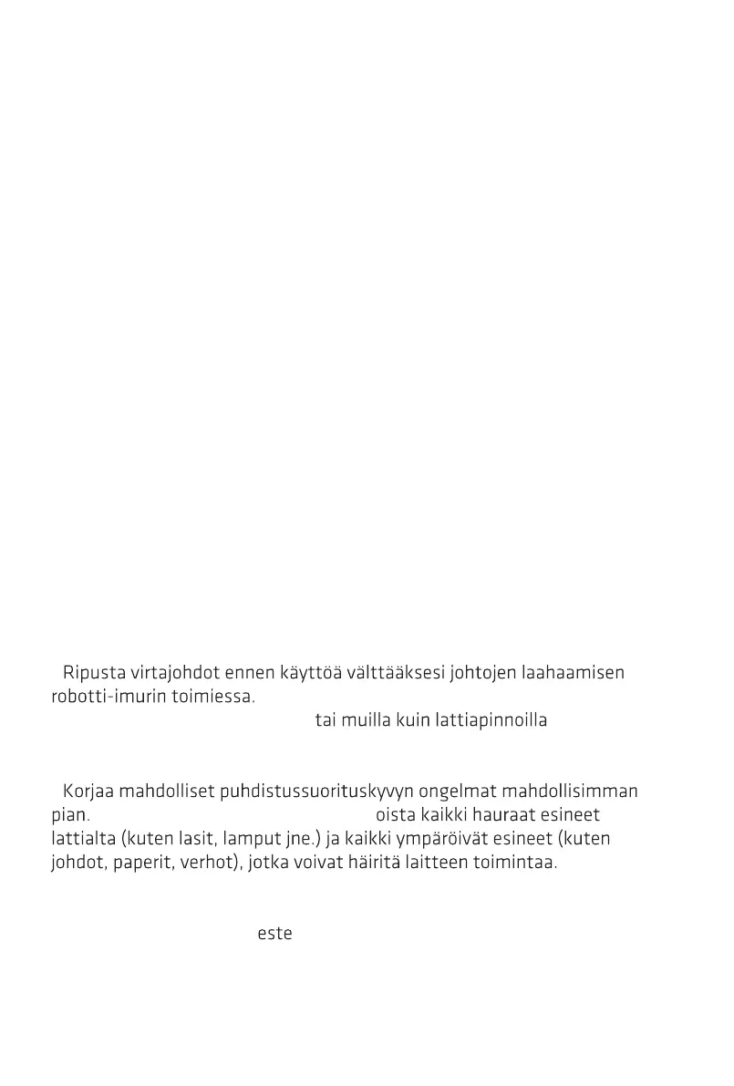 - Käytä ja säilytä robottia vain huoneenlämmössä.
