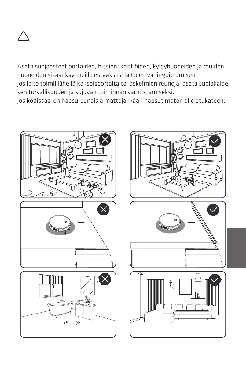 Ennen kuin käytät robottia, poimi vaatteet, irtonaiset paperit, kaihtimien tai