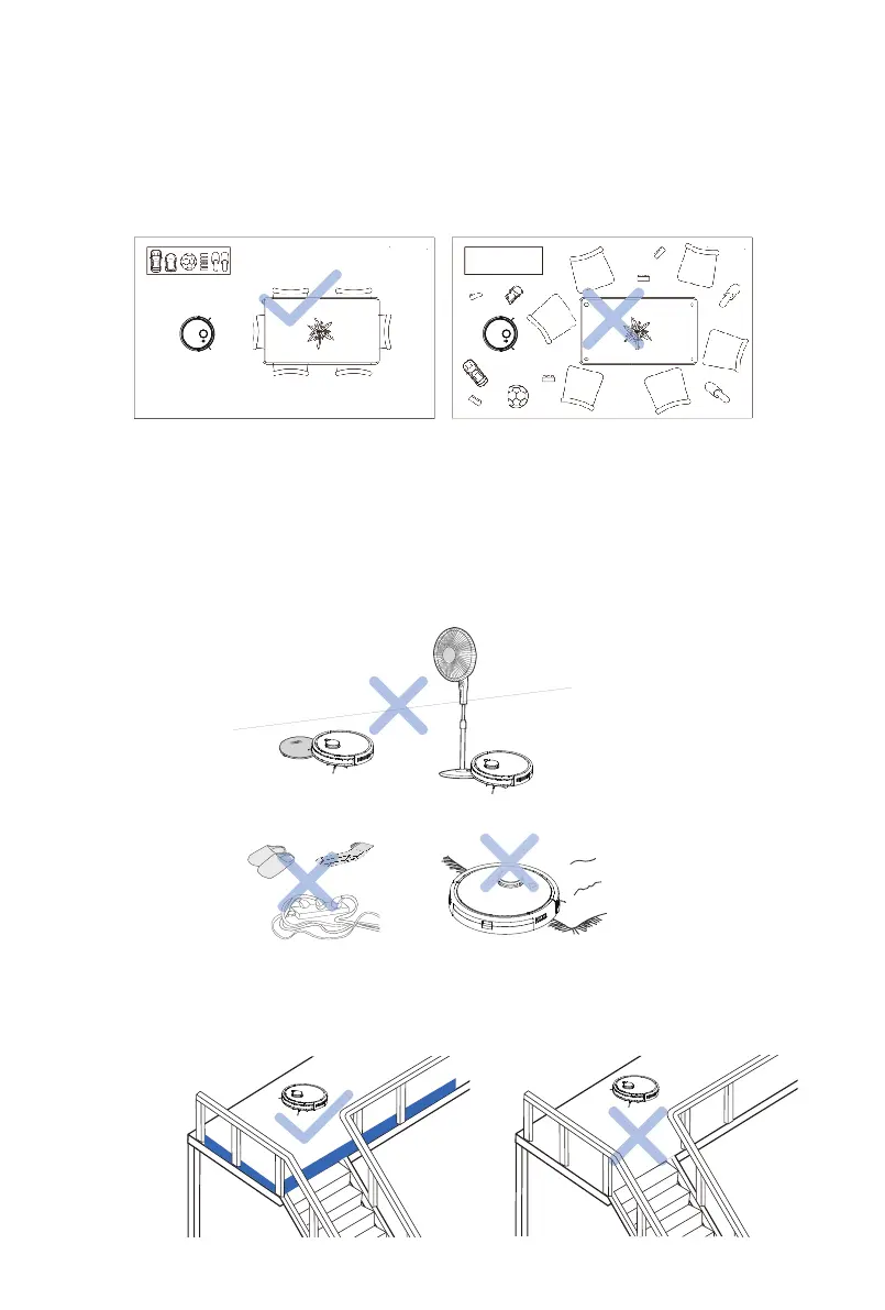 - Remove objects (such as weight scales, floor fan bases, etc.) which may aect the normal operation of