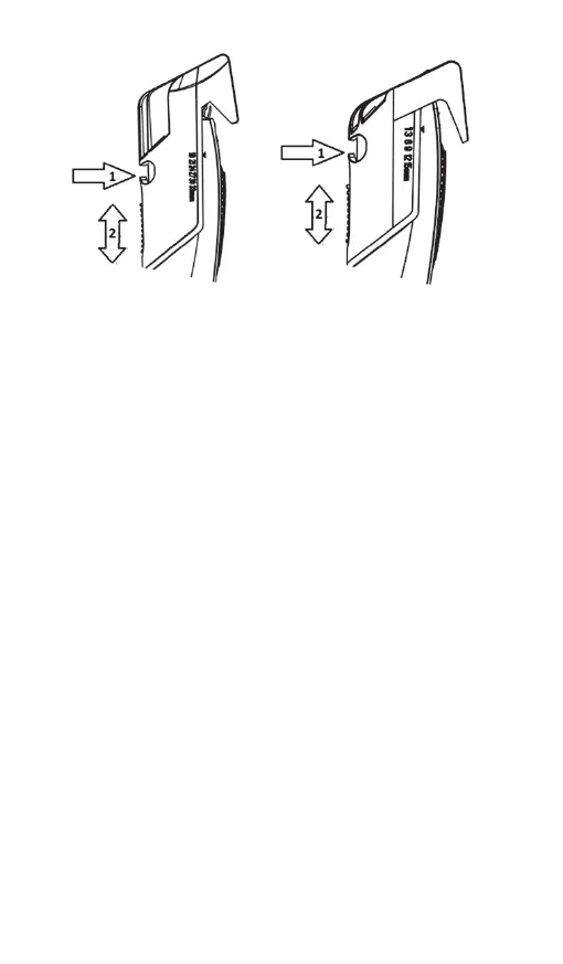 ■ Hold nede knappen på baksiden av kammene, og