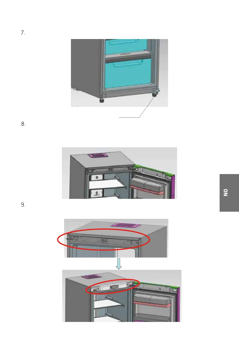 Monter det nedre hengselet på høyre side av fryser.