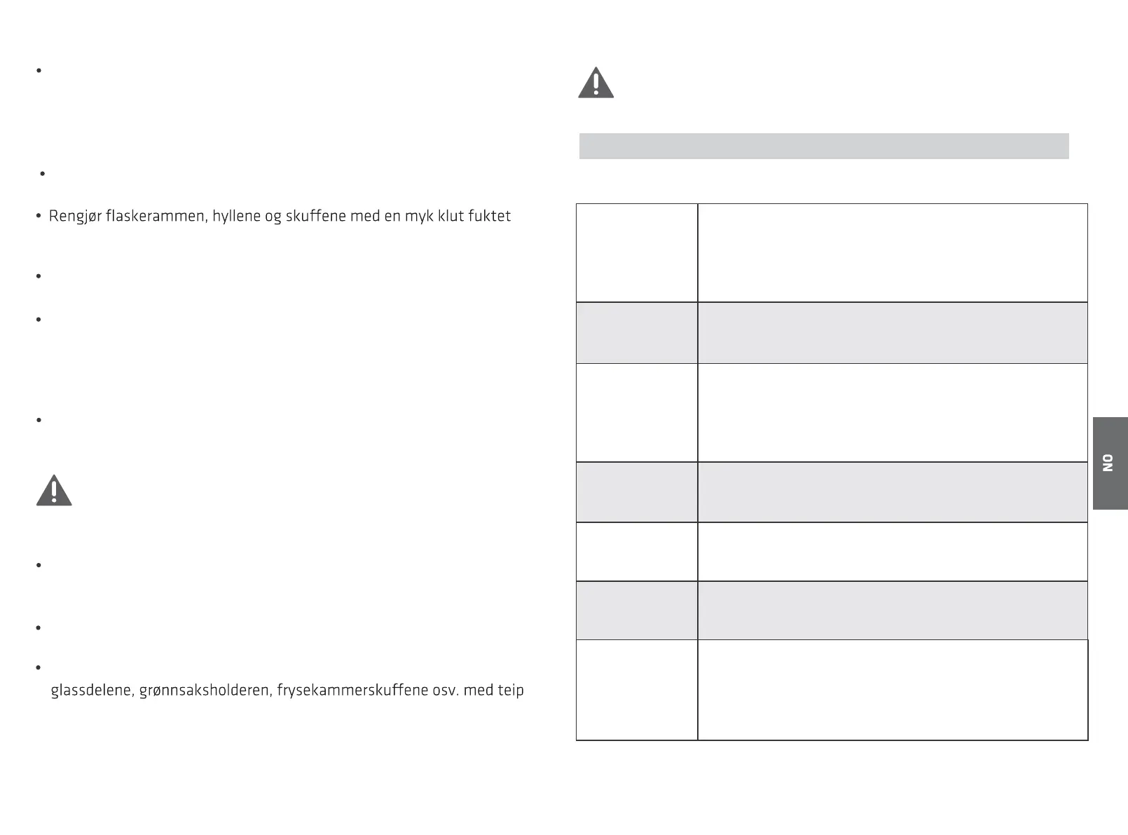 apparatet oppbevares i flere timer. Under strømbrudd bør ikke dørene
