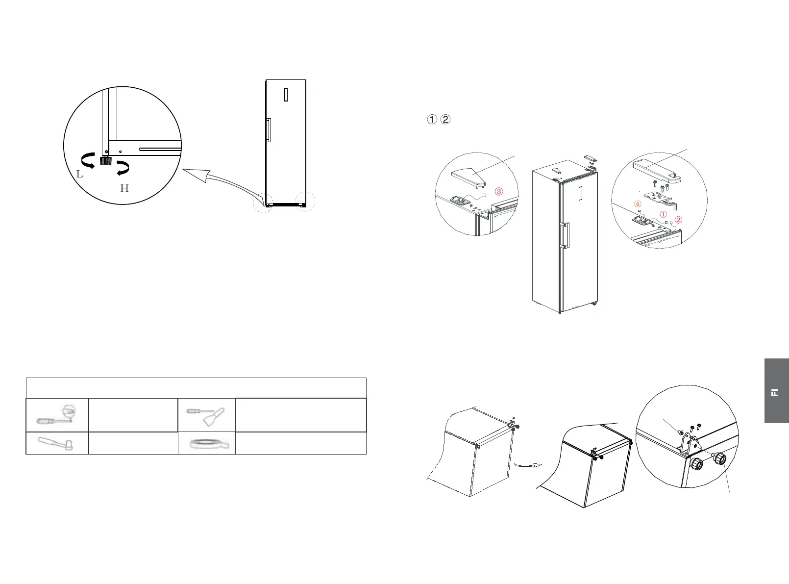 a. Kierrä jalkoja myötäpäivään nostaaksesi pakastinta;