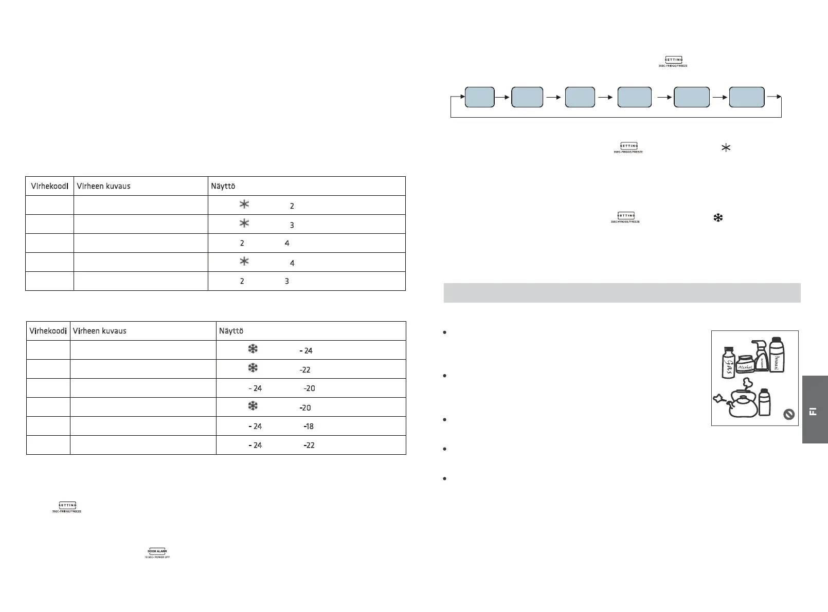 E9 Korkea lämpötilahälytys pakastinosassa