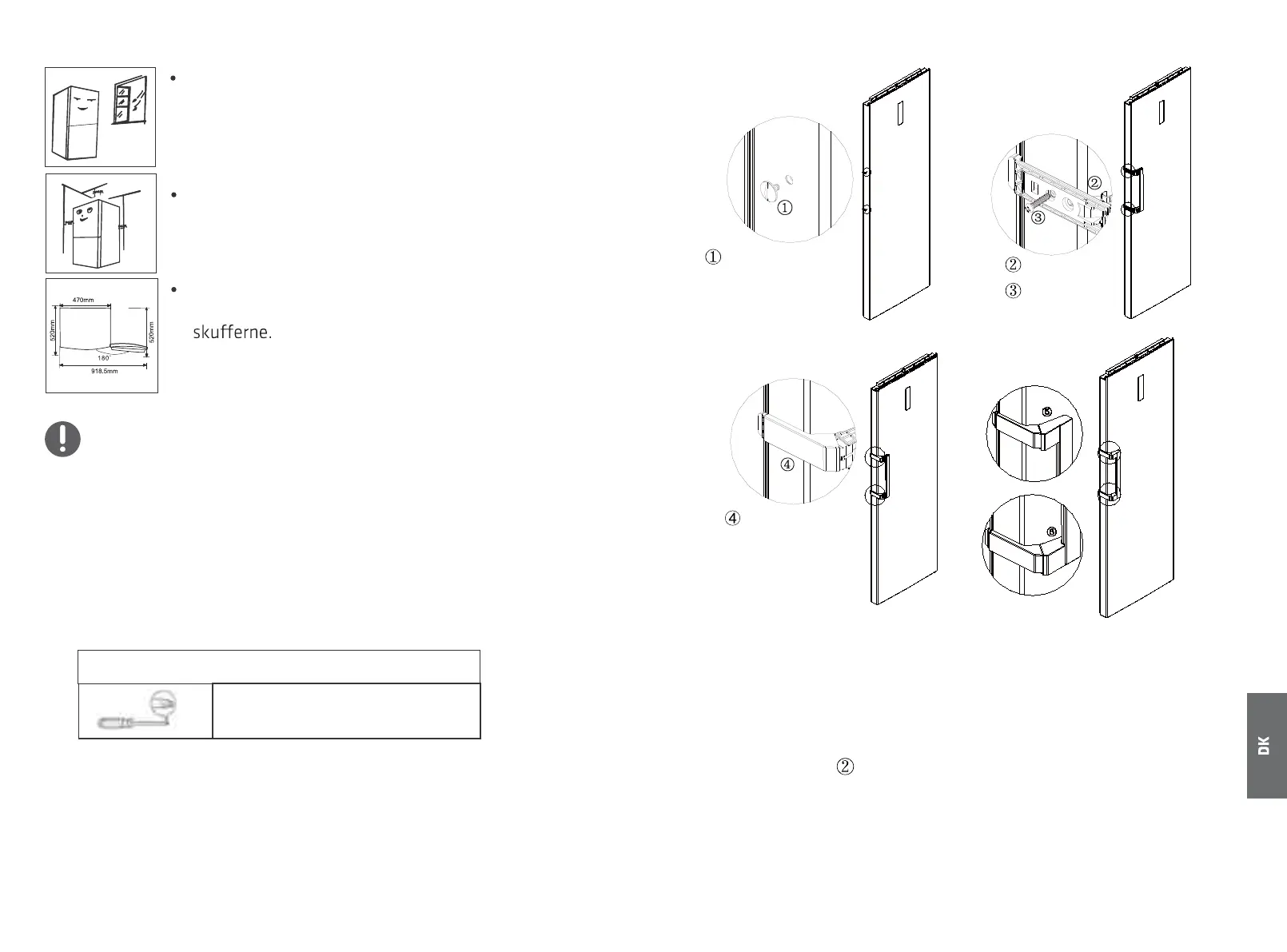 Køleskabet skal placeret i et godt ventileret