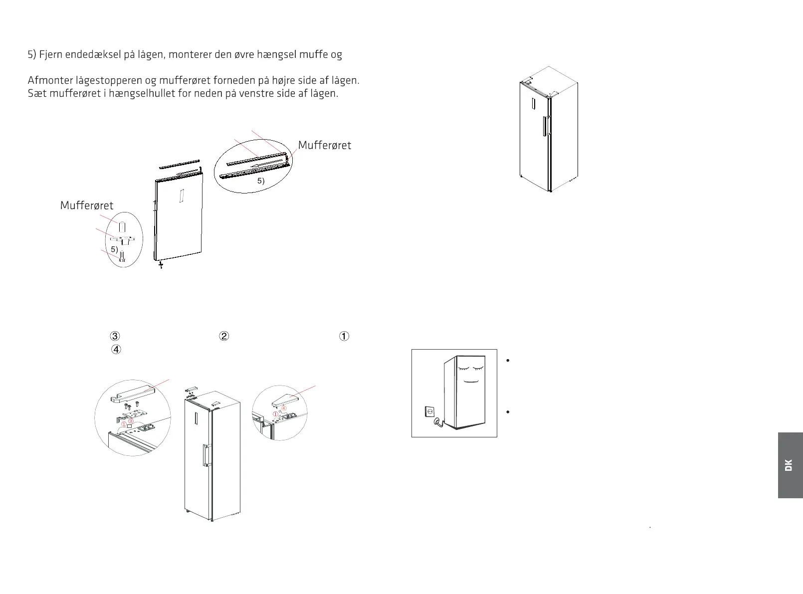 lågen på det nedre hængsel, og monter det øvre venstre hængsel. Slut