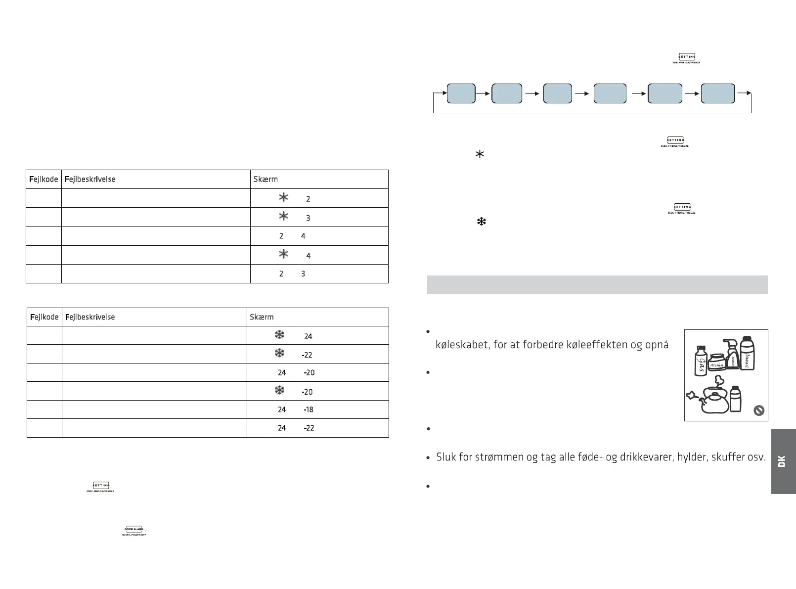 Hold knappen nede i 3 sekunder, for at skifte mellem køling og frysning, hvorefter de