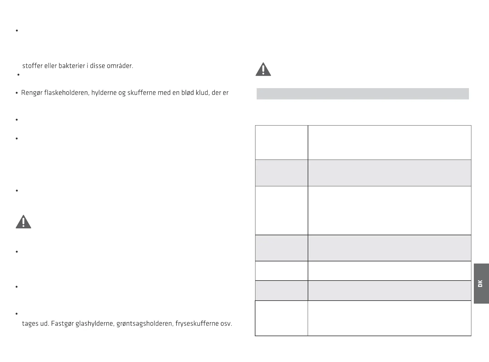 Ved områder, der er vanskelige at rengøre i køleskabet (fx mellemrum