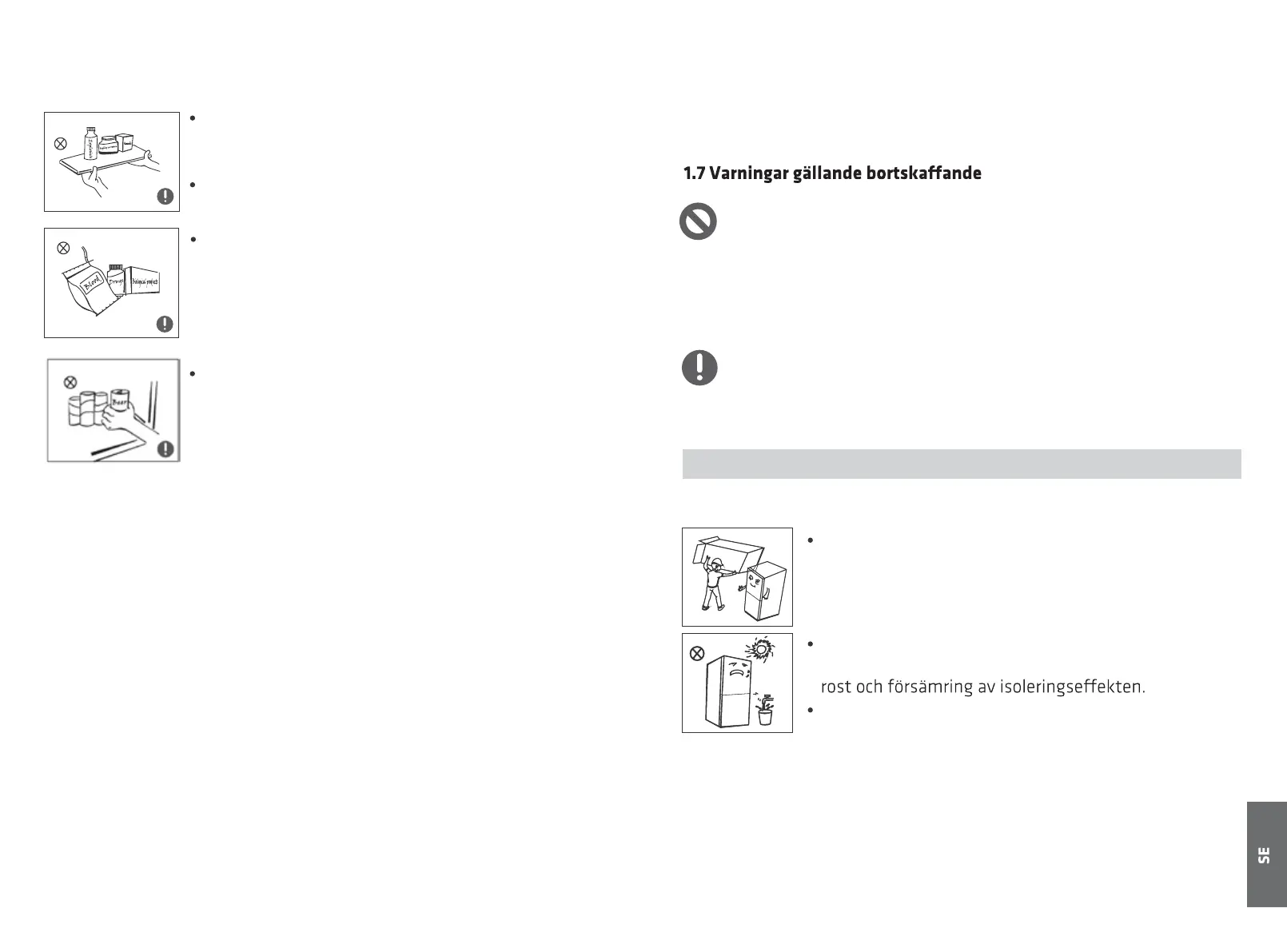 brandfarliga. Därför bör kylskåpet, när det ska skrotas, hållas