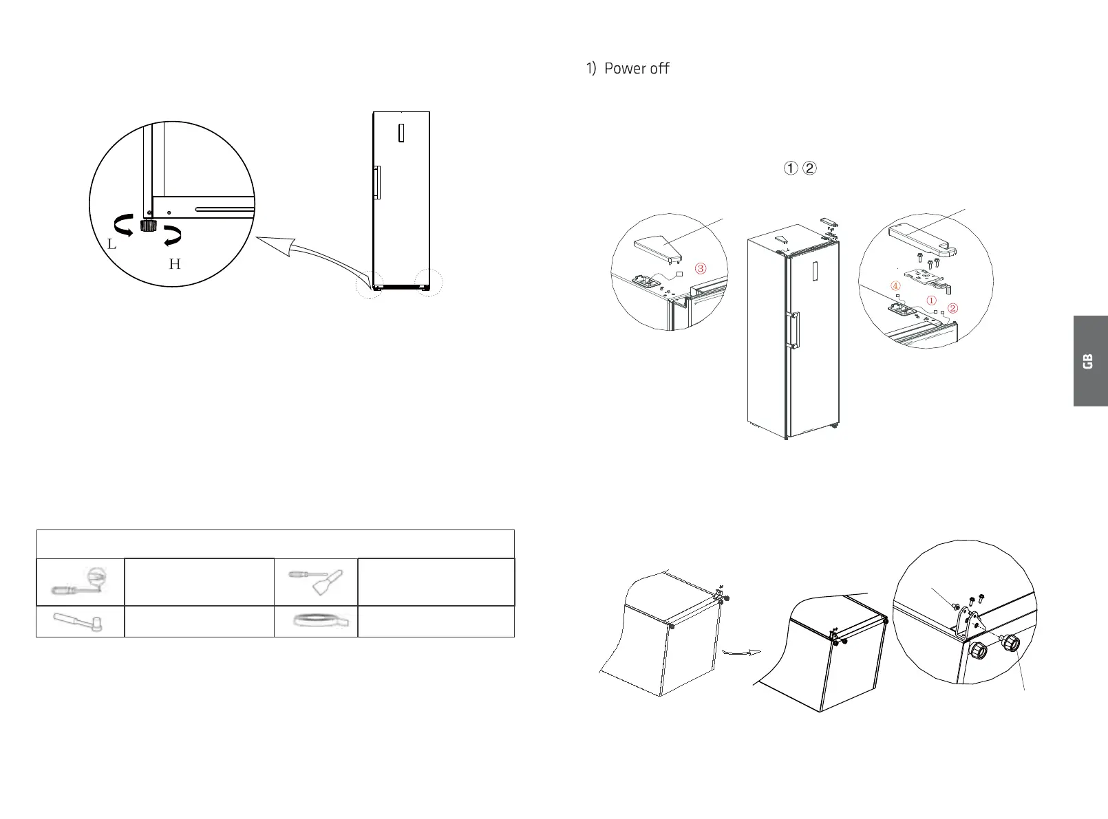 b. Turn the feet counterclockwise to lower the freezer;