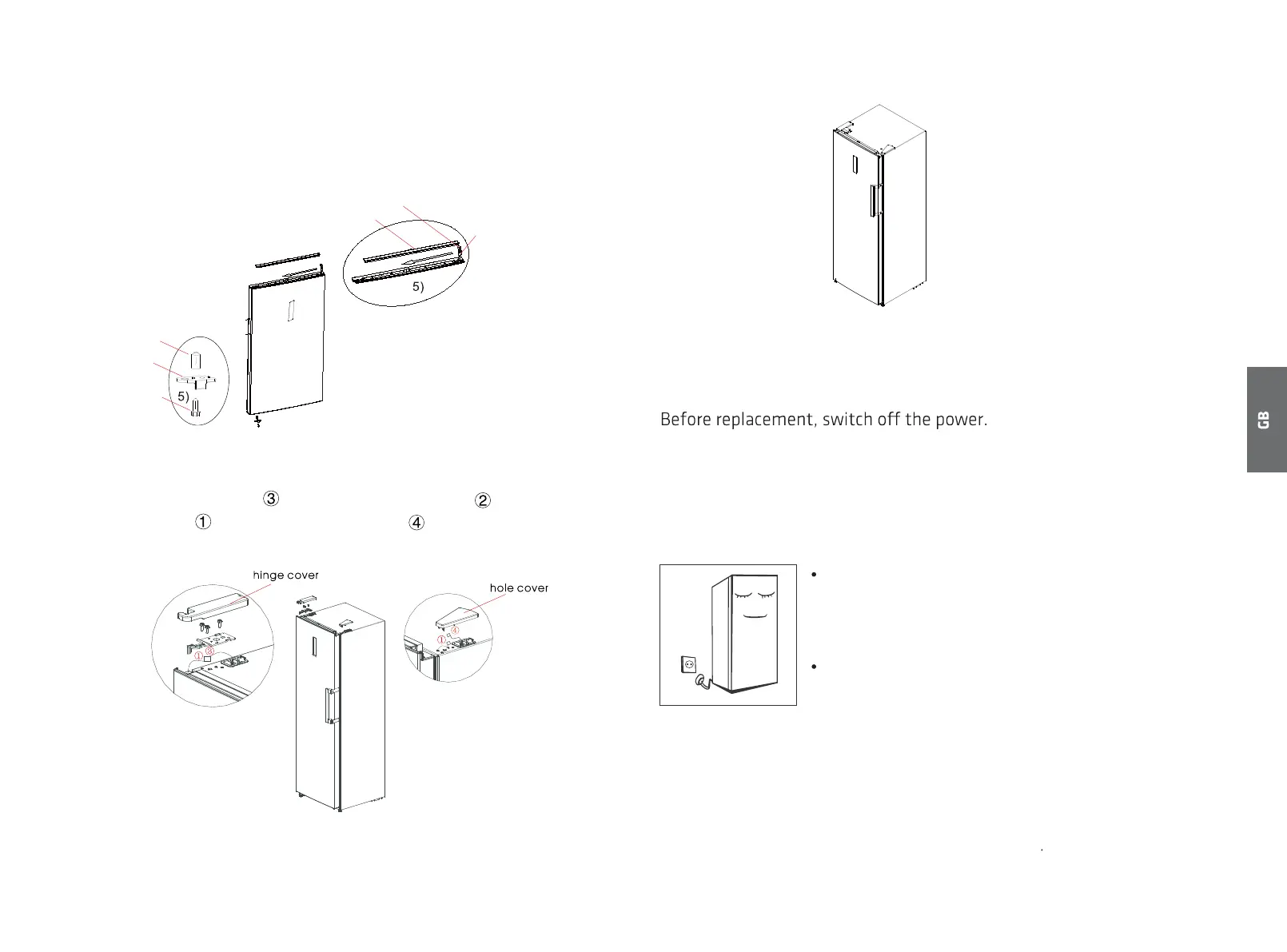 5) Remove the door end cover, install the upper hinge sleeve and door
