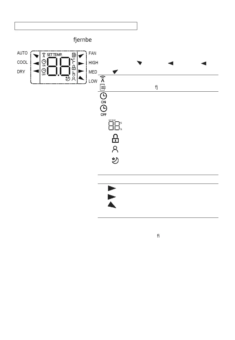 Indikatorer på fjernbetjeningens skærm