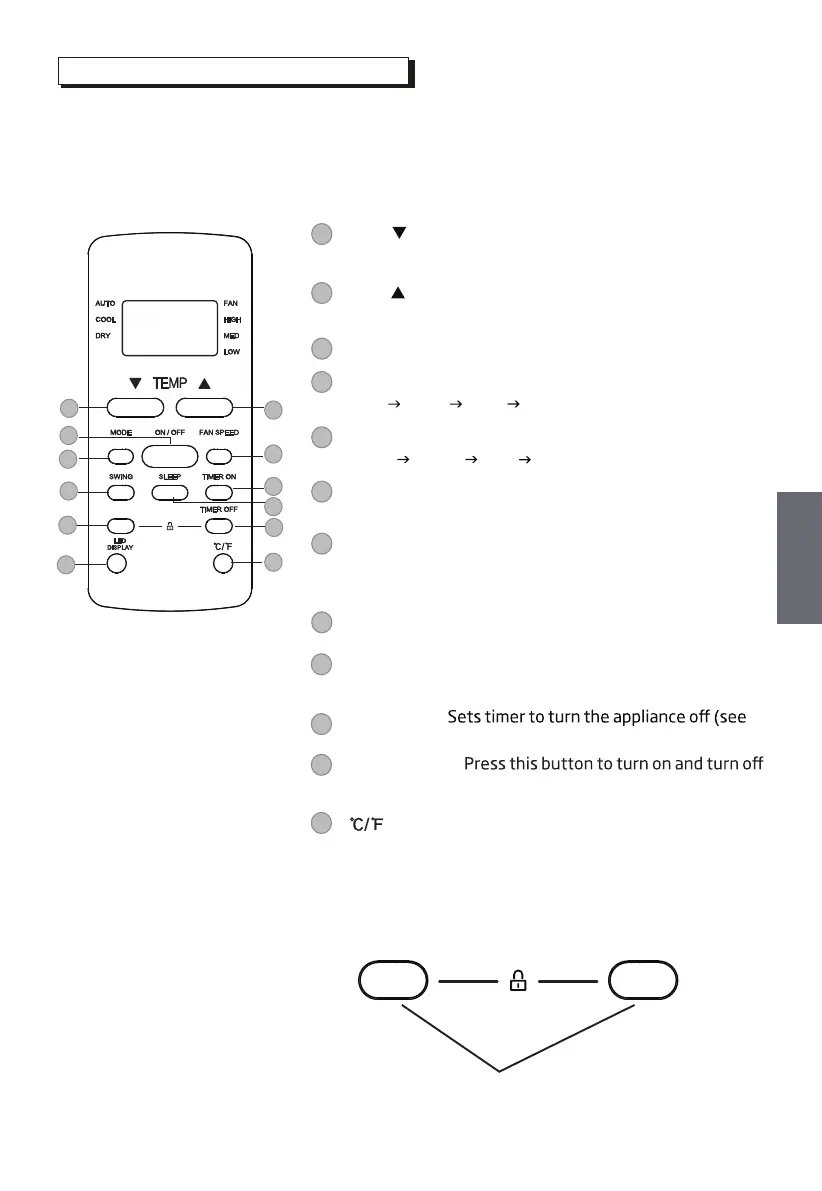 TEMP : Decreases temperate in 1°C/1°F increments.
