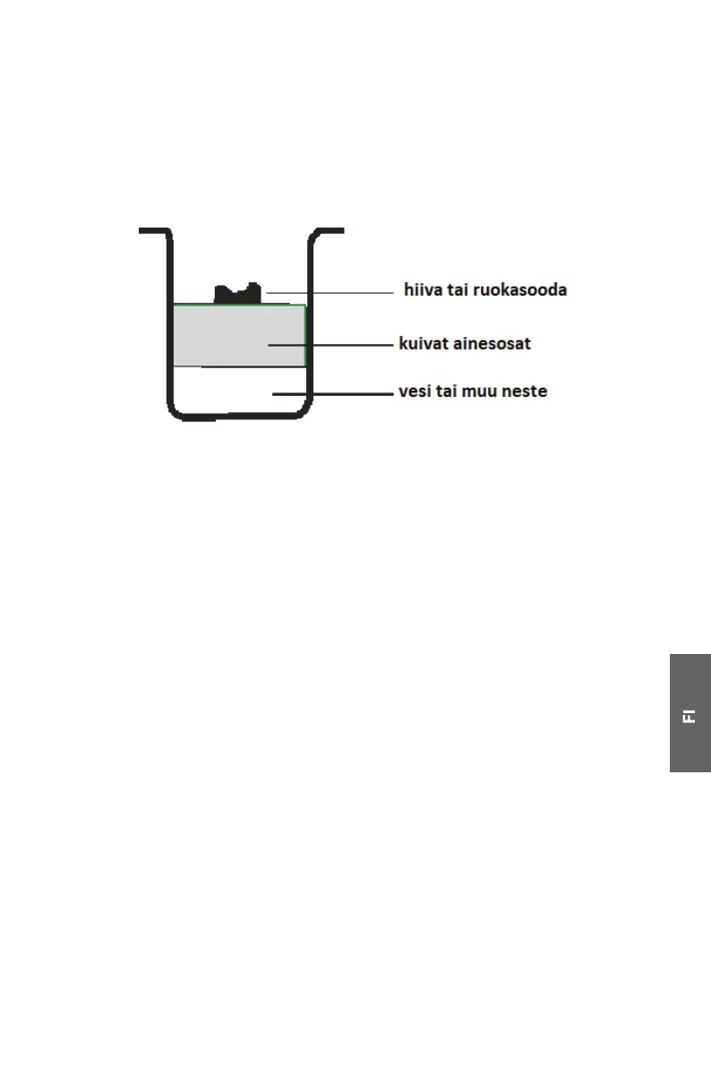 varmista, ettei se joudu kosketuksiin nestemäisten ainesosien tai