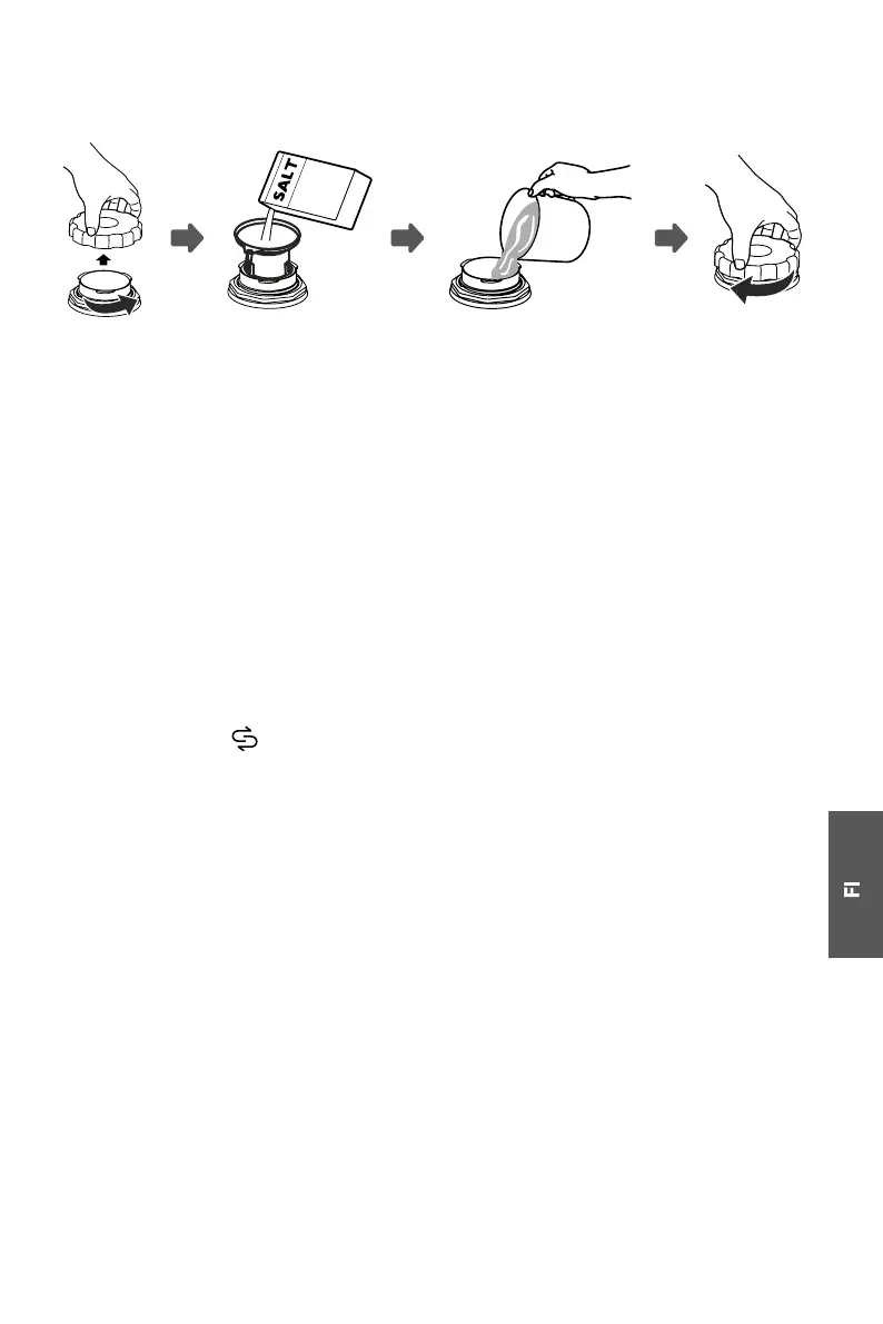 6. Heti suolan täyttämisen jälkeen suolasäiliöön on käynnistettävä