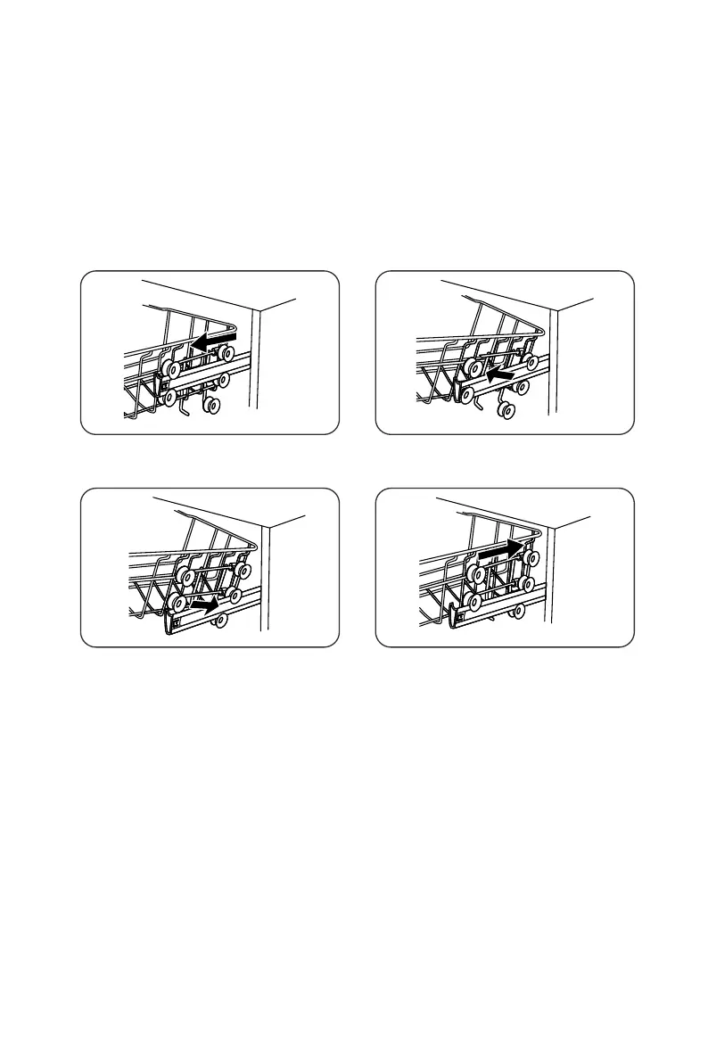 Ylemmän korin korkeutta voidaan helposti säätää, jotta korkeammat astiat