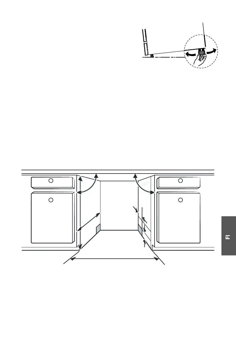 1. Astianpesukoneen ja kaapin yläreunan välinen etäisyys on alle 5 mm ja ulko-