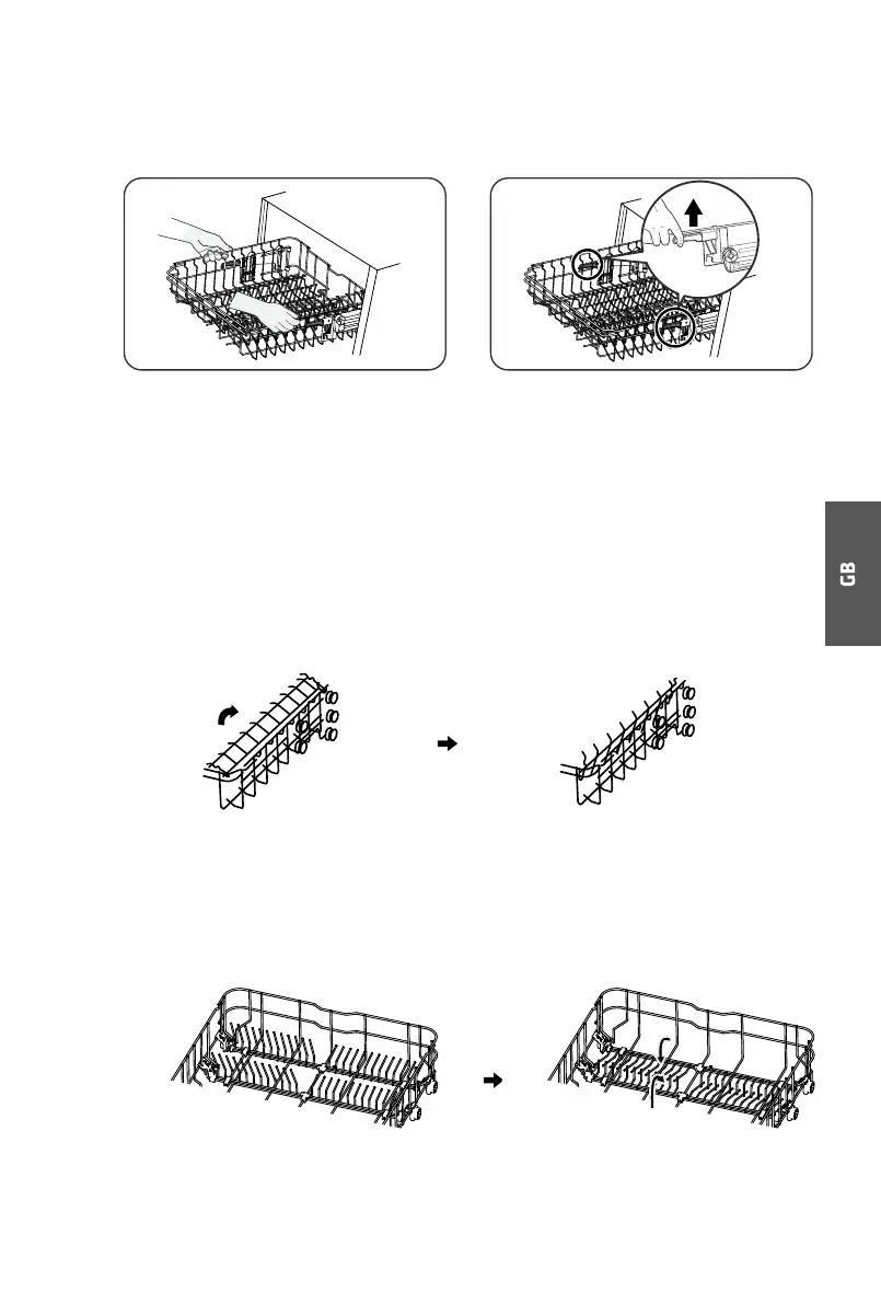 To make room for taller items in the upper basket, raise the cup rack upwards. You