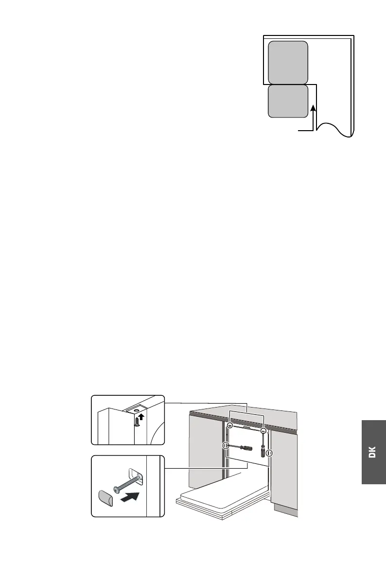 2. Hvis opvaskemaskinen opstilles i hjørnet af skabet,