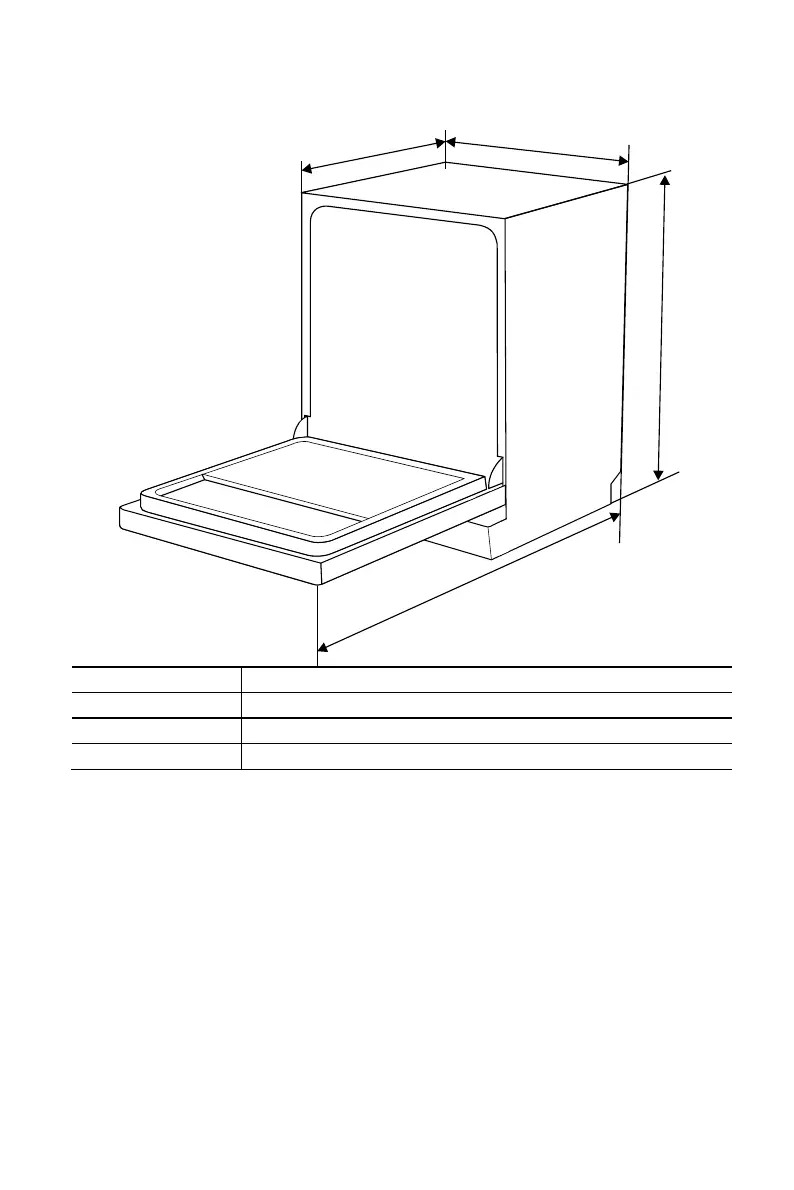 Dybde (D2) 1150mm (med lågen 90° åbnet)