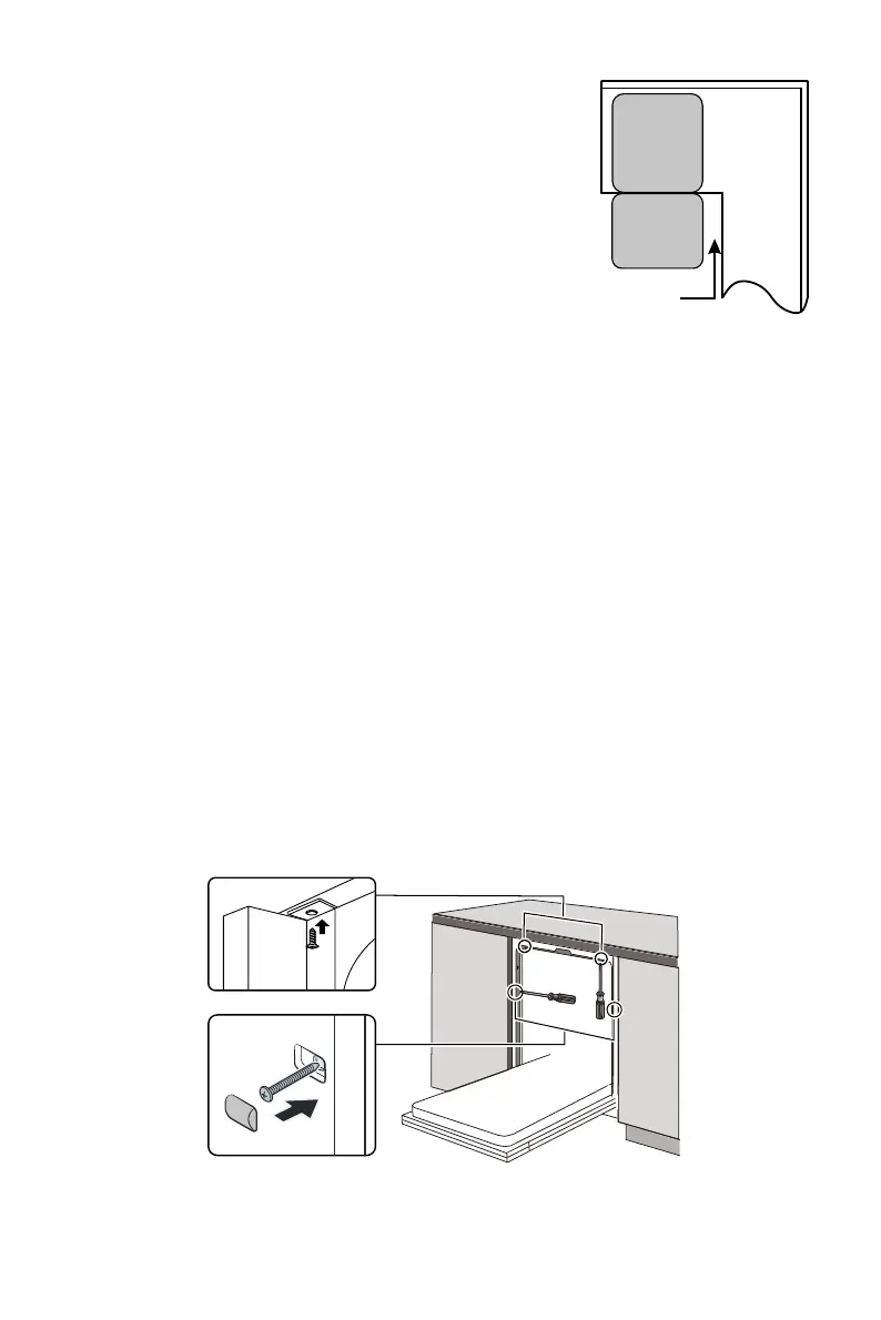 2. Om diskmaskinen installeras i hörnet på skåpet, så