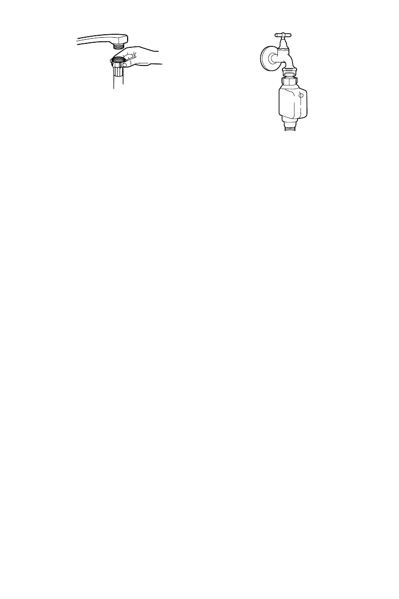 dyppes i vann for å unngå at det oppstår tilbakestrømning. Fest tappeslangen
