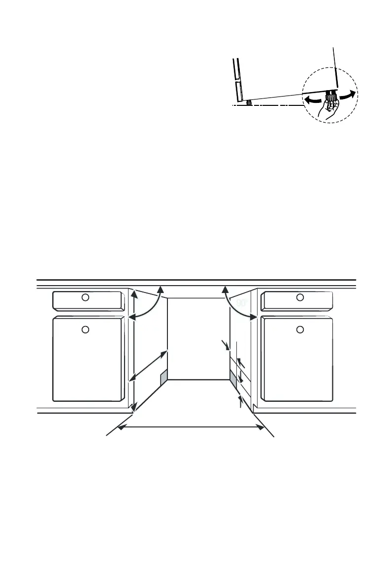 høyden på oppvaskmaskinen stilles inn ved å