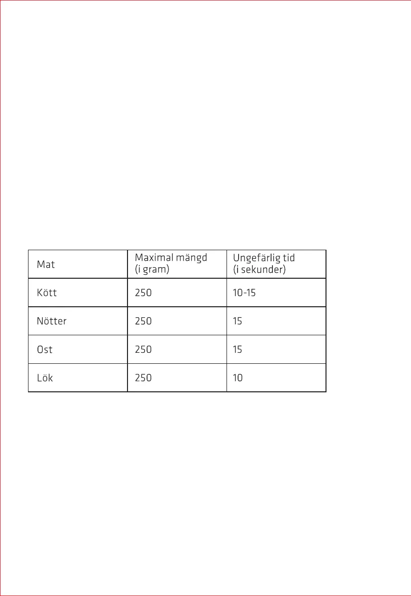Lämplig för hackning av kött, ost, grönsaker, kryddor, bröd, kex och nötter.