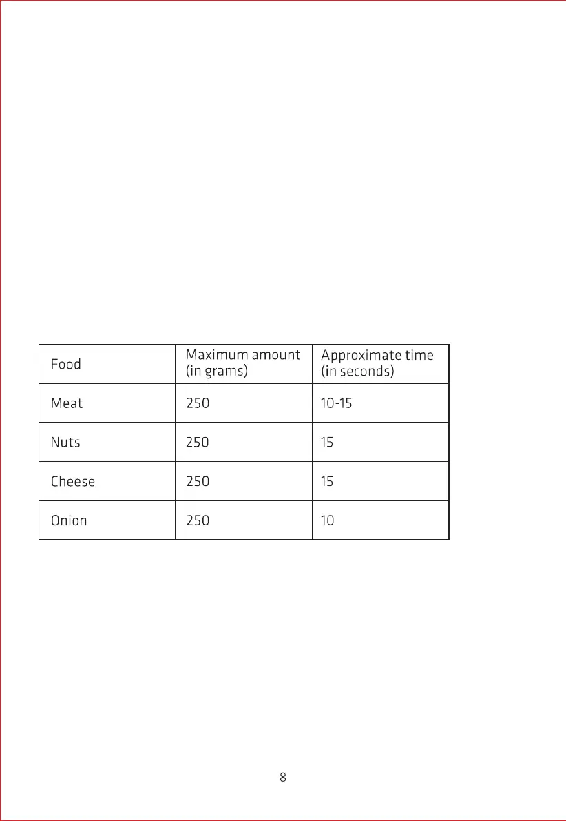 Remove any bone inside the ingredients to be processed and cut food into 1-2