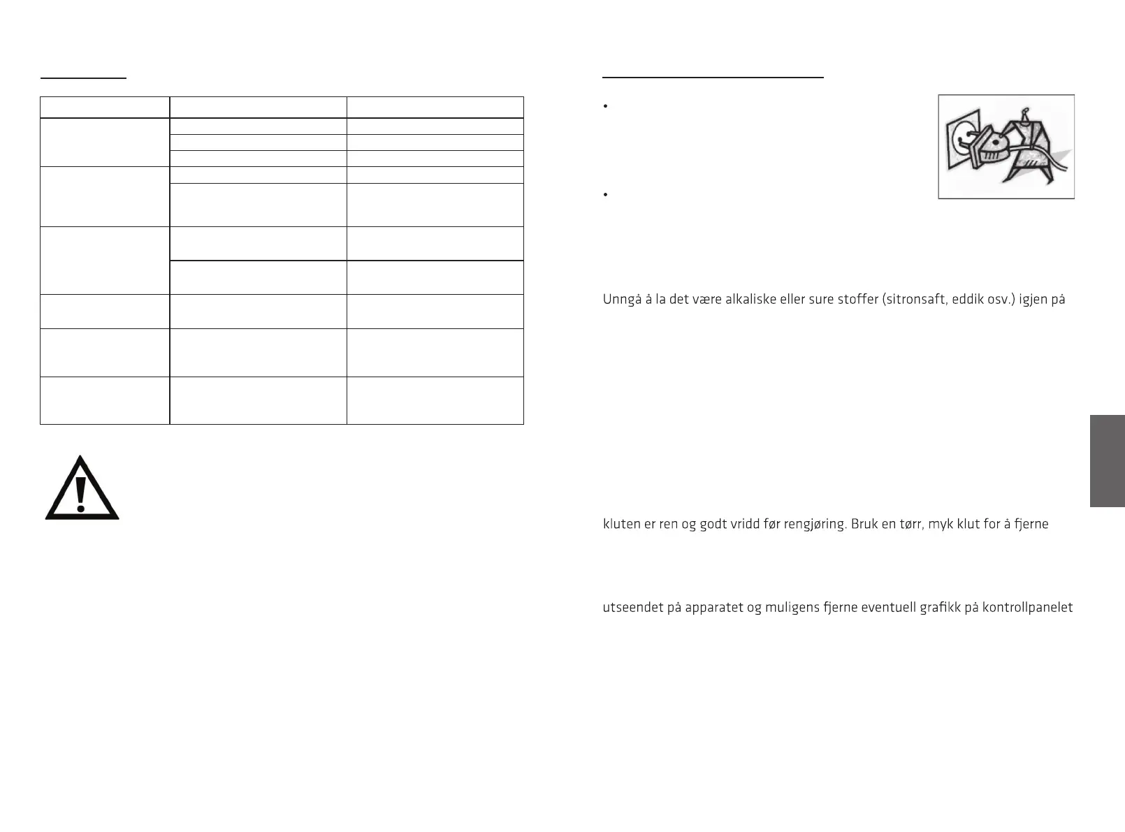 Rengjøring og vedlikehold bør utføres når apparatet er kaldt, spesielt rengjøring.