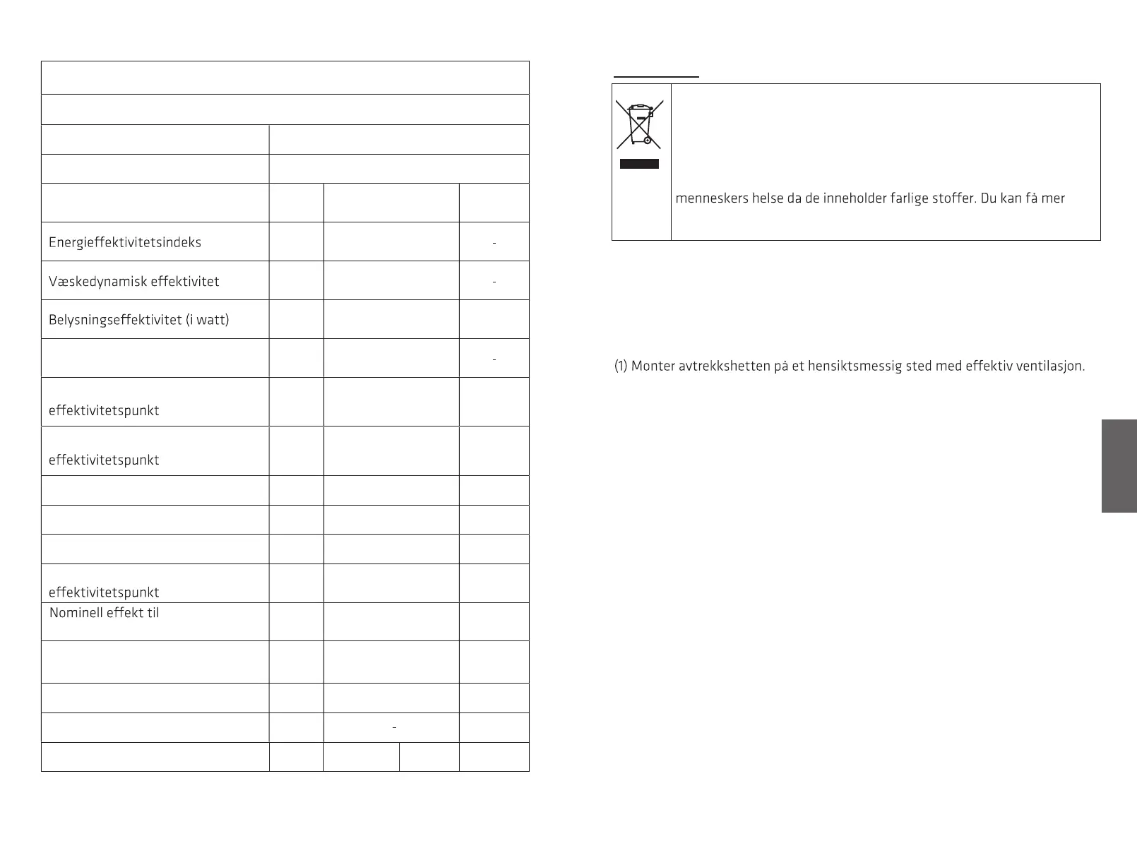 (2) Rengjør avtrekkshetten regelmessig for ikke å blokkere luftveien.