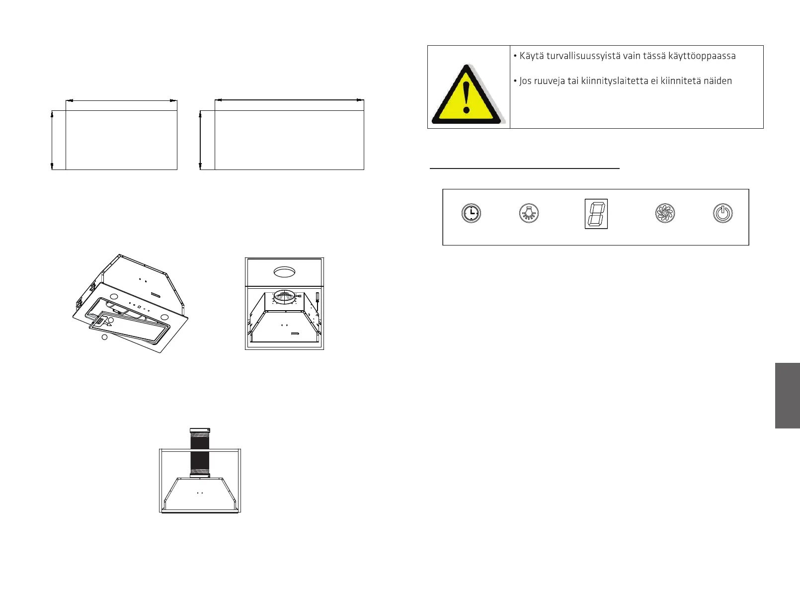 1. Paina “Virta”-painiketta, liesituulettimen “Päälle” ja “Pois” -painiketta.