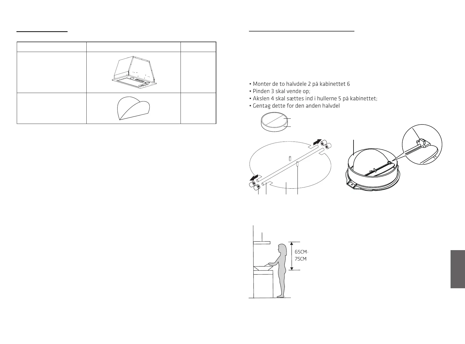 Hvis komfuret ikke har en samlet V-klap 1, skal du montere halvdelene på dens