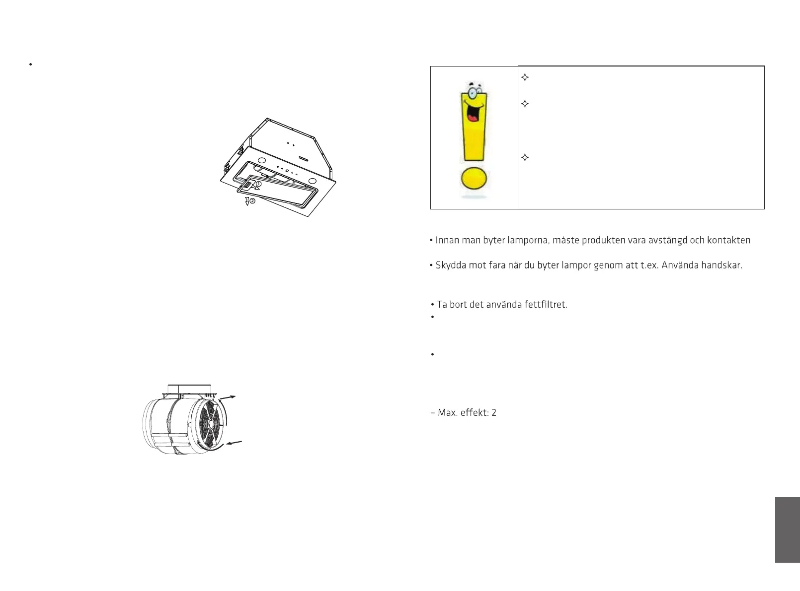 Lampan måste bytas av tillverkaren, dennes