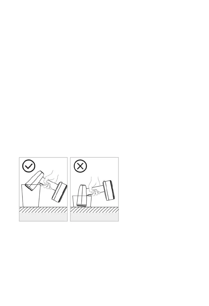 •Doppa inte produkten i vatten eller andra vätskor eller skölj under kranen.