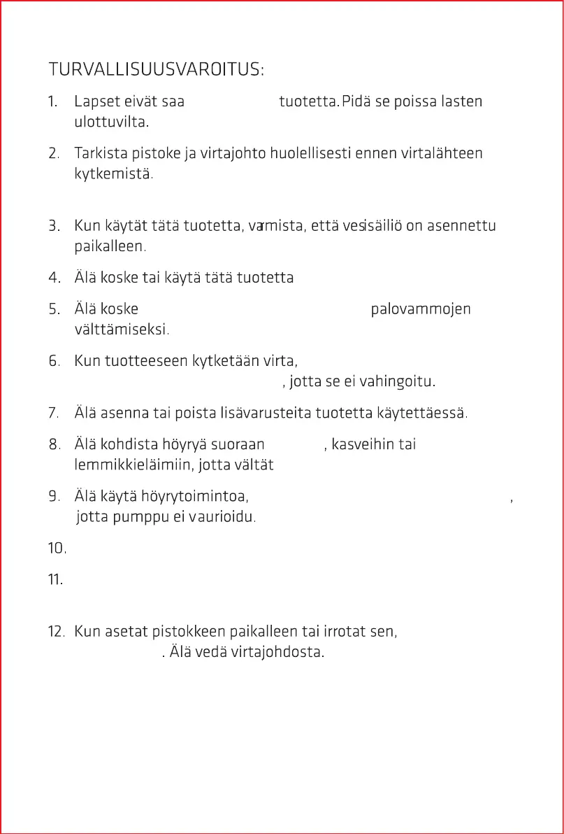 Älä koskaan jätä laitetta yksin sen ollessa päällä.