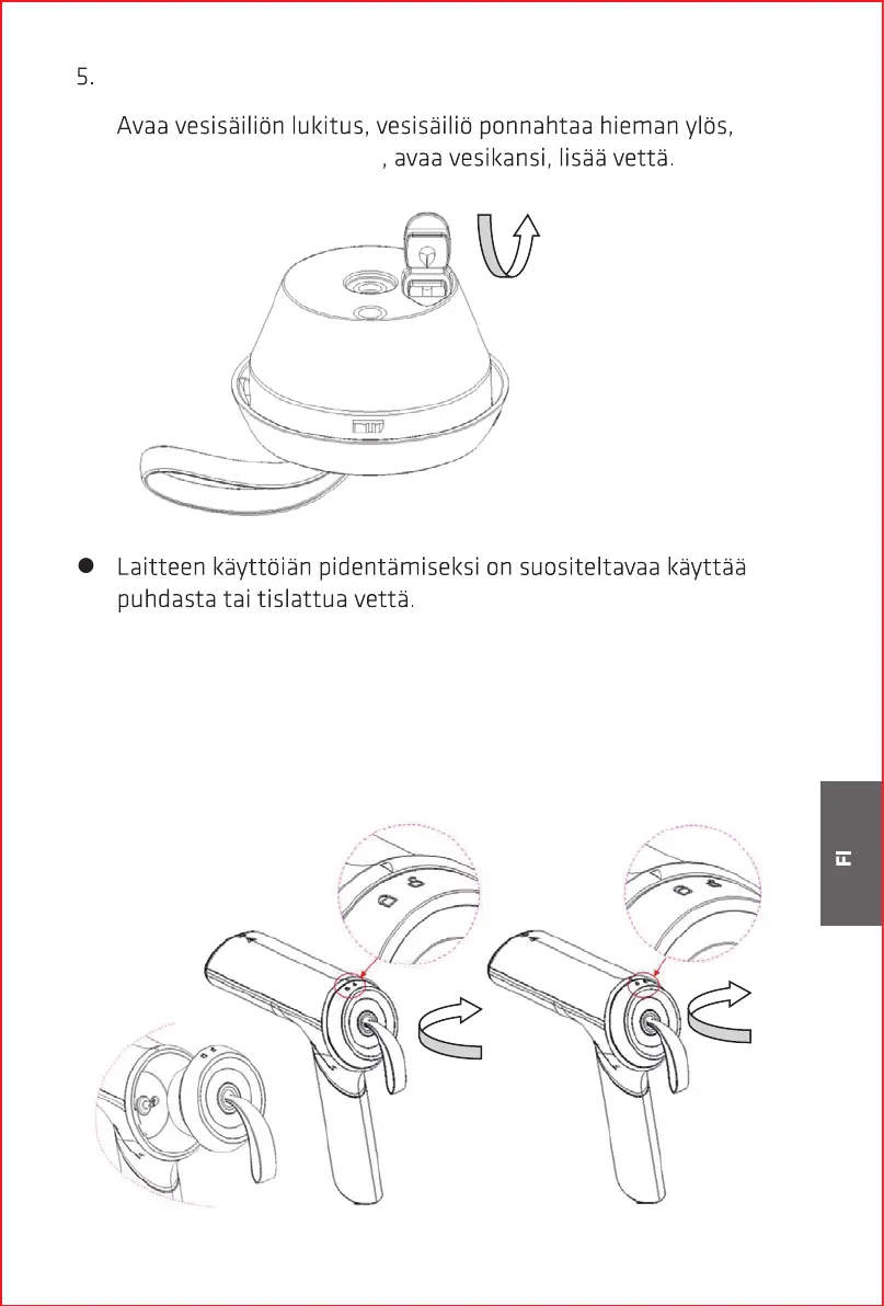 vesisäiliö paikoilleen ja lukitse säiliö alla olevan kuvan mukaisesti.