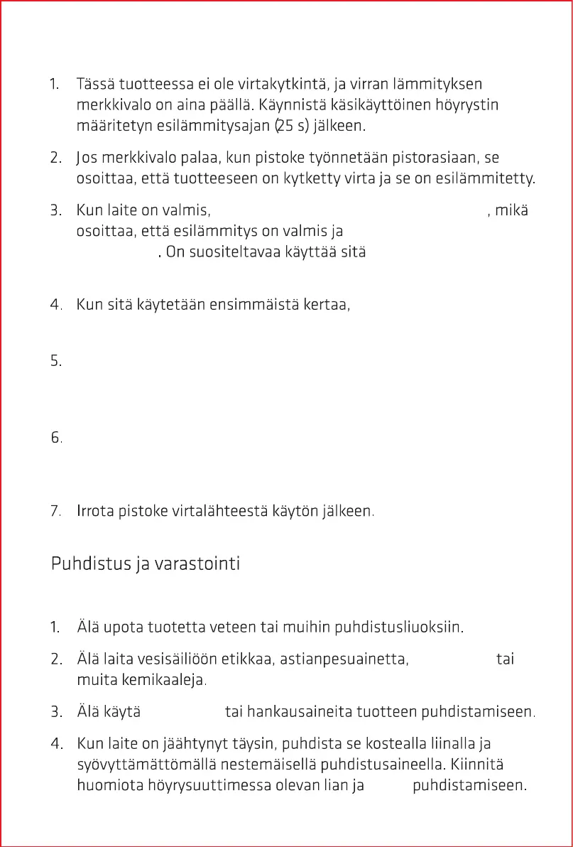 purkautuu höyrystimen rei’istä. Höyry purkautuu, kun