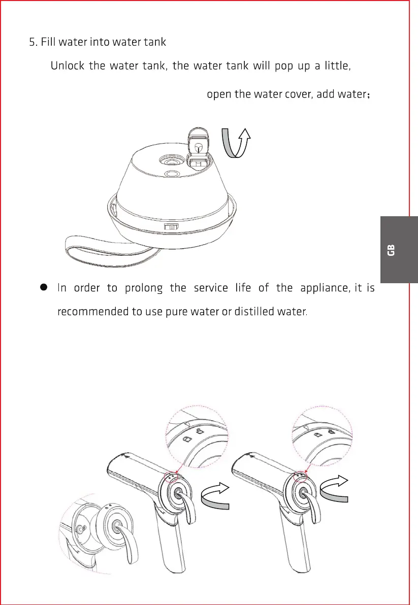 6. Cover tightly with the water tank cover to prevent leaking, put the