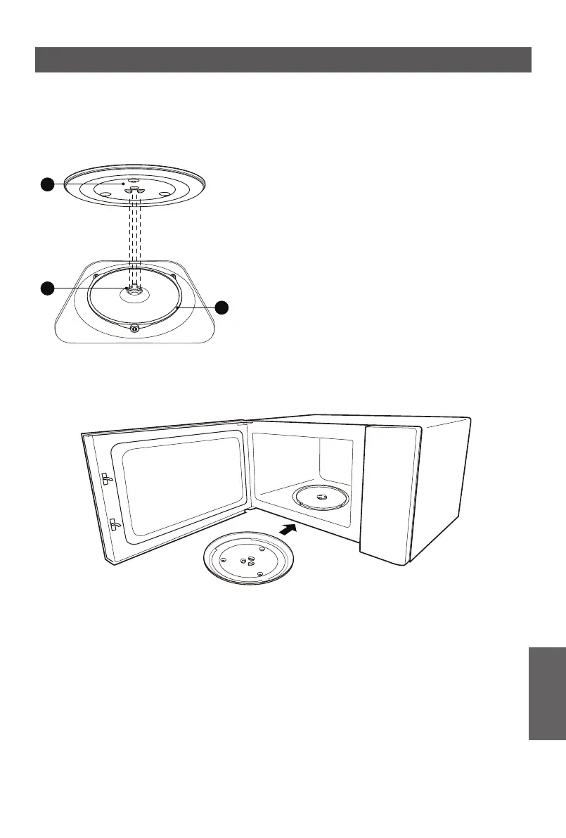 Rengör tillagningsutrymmet och placera den roterande ringen och tallriken.
