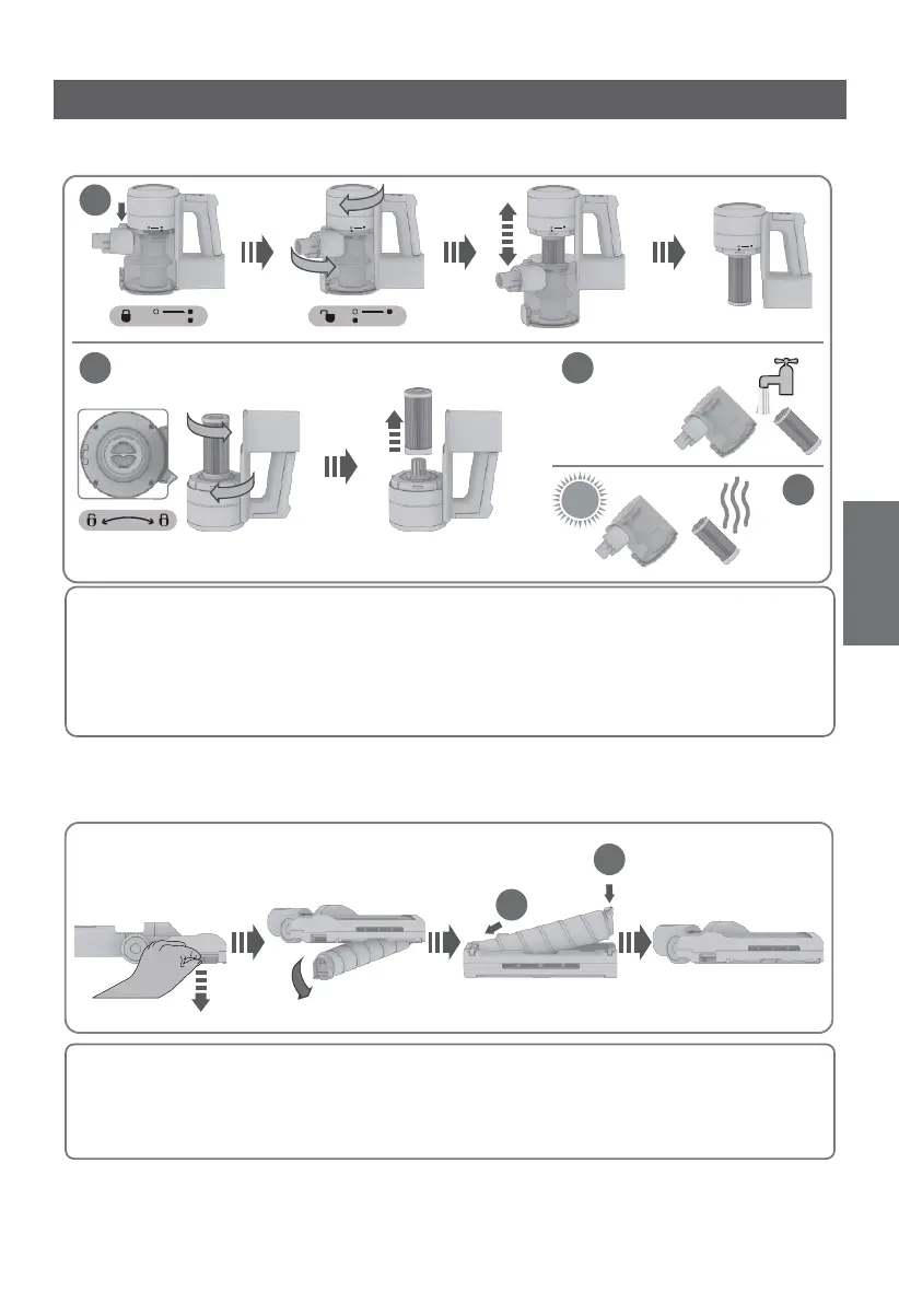 appliance to remove the dust container. Turn the inlet filter and separate the filter.