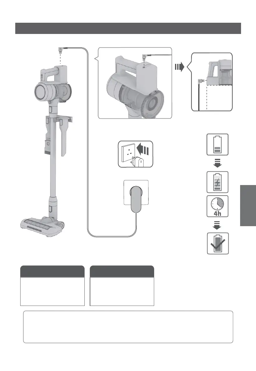 Koble adapteren til ladekontakten på håndtaket til apparatet. Etter lading