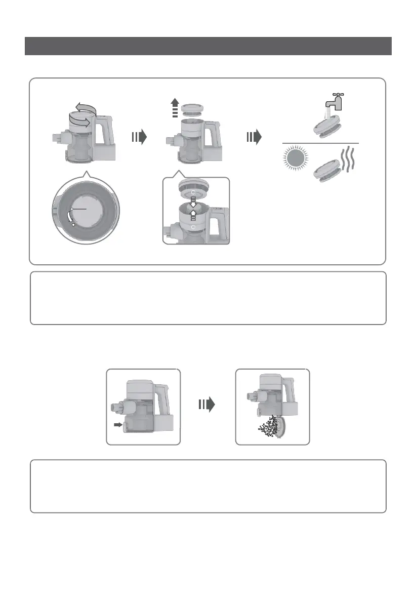 sköljas i vatten. Låt filtret torka innan det placeras tillbaka i dammbehållaren.