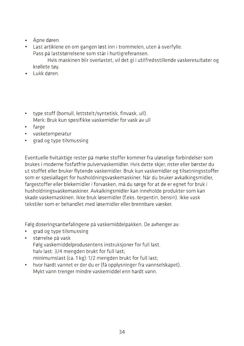 Bruk alltid vaskemiddel med høy eektivitet og lavt skum i en frontmatet maskin.