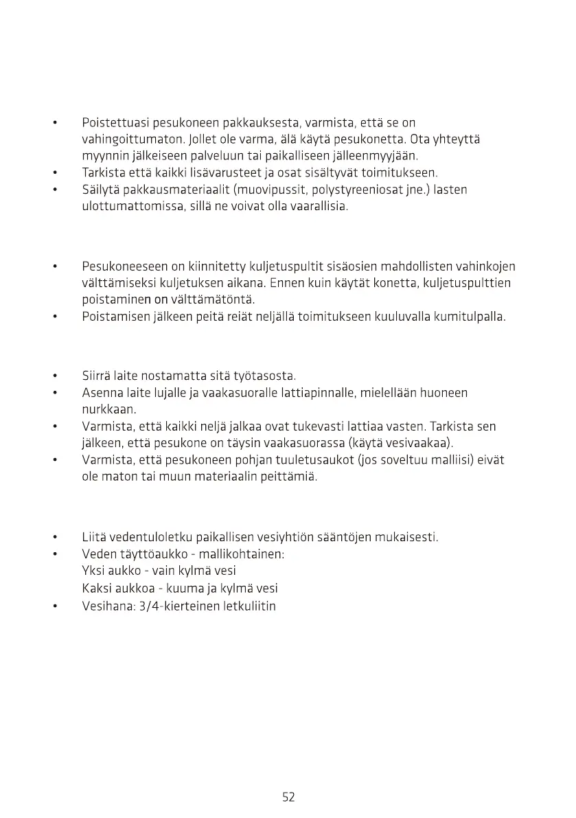 ENNEN PESUKONEEN KÄYTTÖÄ