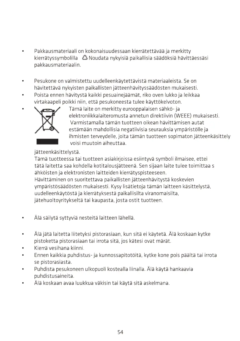 2. Pakkauksen ja vanhojen pesukoneiden hävittäminen.