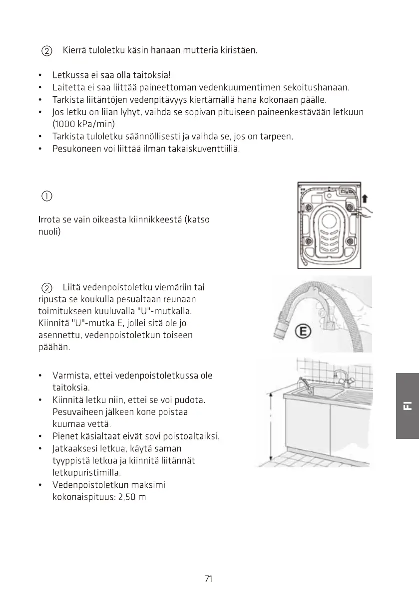Kun vedenpoistoletku on asennettu,