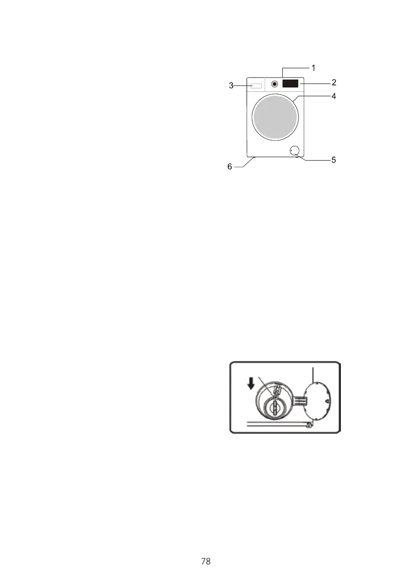 3. Betjeningsmetode: Åbn dækslet til drænpumpens låge, træk låsehåndtaget
