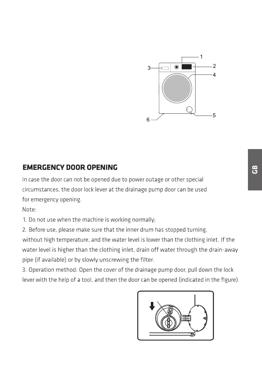point POWM3A814 - Washing Machine Description; Appliance Components Overview; Emergency Door Opening Procedure